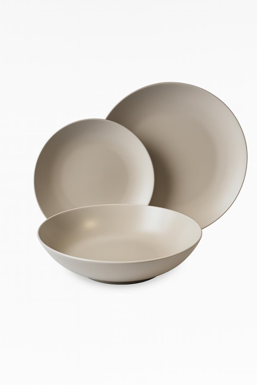Sleek and refined, this matte stoneware dinnerware set in soft taupe tones adds understated elegance to your dining table, served in 6 pieces. With smooth, minimalist lines and a modern matte finish, each piece is versatile enough for both casual meals and formal gatherings. Durable, timeless, and effortlessly stylish—this set brings harmony and sophistication to every dining occasion.