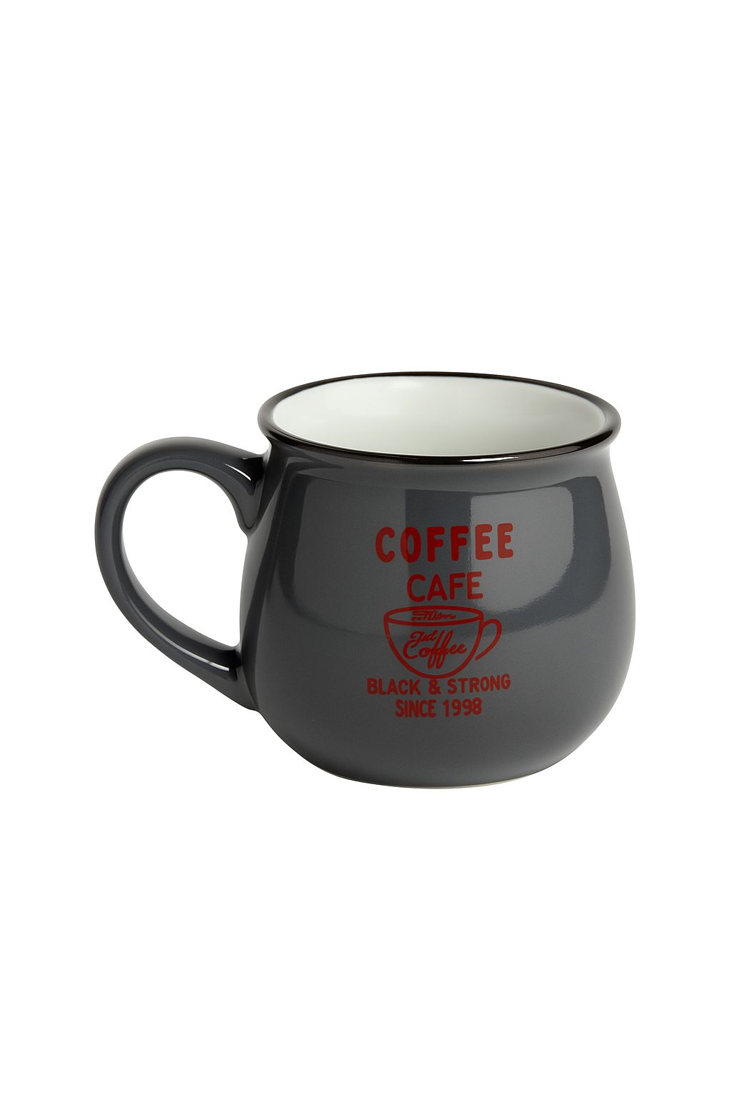 Start your mornings with a cozy, vintage feel. These retro porcelain mugs feature a rounded shape and playful café-inspired prints — one with "Black & Strong Since 1998" in charcoal grey, and the other with "Hot & Fresh Coffee House" in warm beige. Comfortable to hold and full of charm, these mugs are perfect for coffee lovers who appreciate a touch of nostalgia. Sold individually – choose your favorite color or collect both!