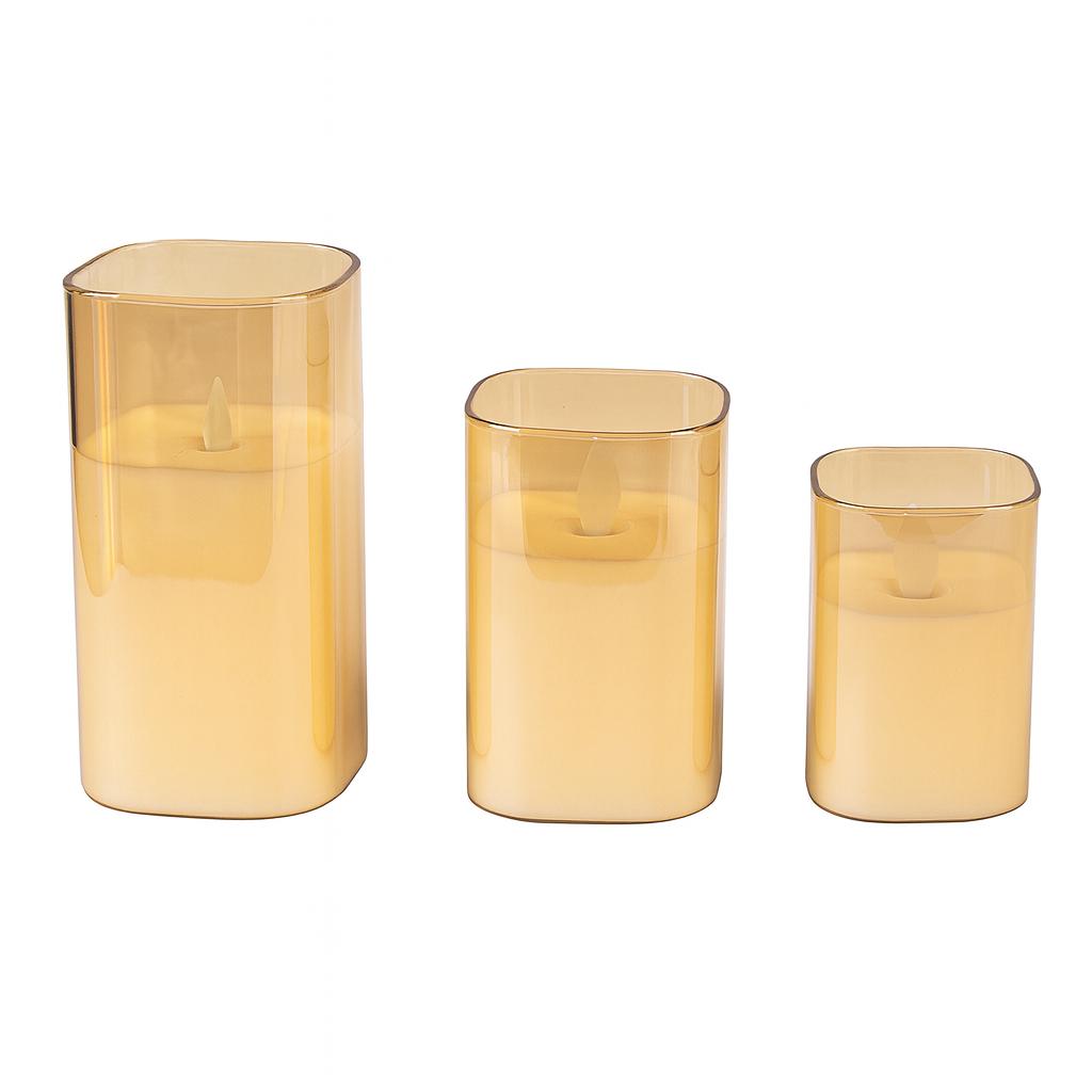A stylish trio of LED candles in smoky grey glass holders. Their subtle tinted finish and warm flickering flame effect create a modern, cozy atmosphere — perfect for chic living rooms, dining tables, or evening gatherings.