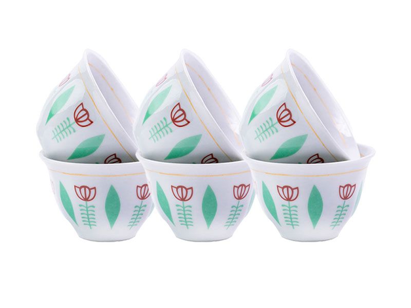 A charming 12-piece set of Turkish coffee cups adorned with classic green and red floral motifs and a golden rim. Perfect for serving guests with cultural flair, these cups celebrate tradition with elegance—ideal for daily rituals or special gatherings.